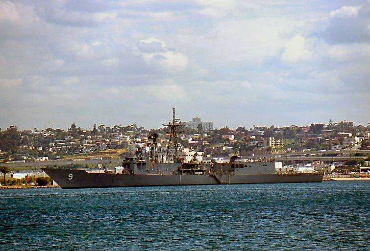 439k | September 1981: the Pacific Ocean - USS Wadsworth (FFG 9) underway off Long Beach. (Heilenday photo #1 00102A from the Heilenday Collection) |