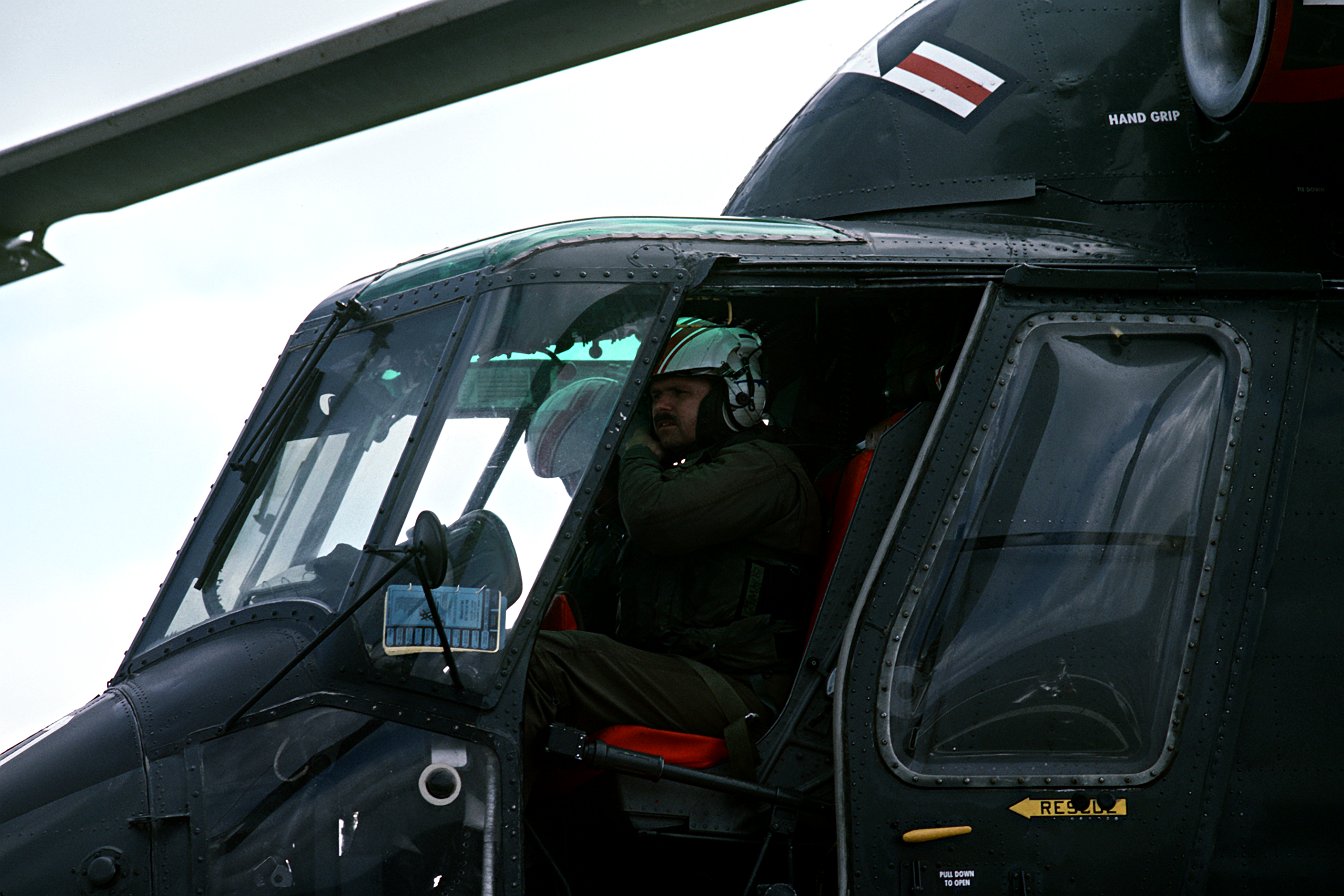 170k | 01 March 1987: The Pacific Ocean - A pilot straps his helmet on prior to taking off from Sides in a Helicopter Light Anti-submarine Squadron 84