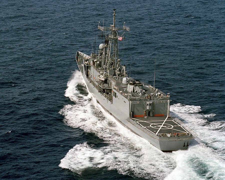 130k | 27 February 1987: San Diego, Cal. - Aerial of Copeland underway in San Diego Bay with Point Loma in the background. (U.S. Navy photo DVID #DN-SC-05-07451 by PH1 Dutkiewicz, from the DVIC) | ||