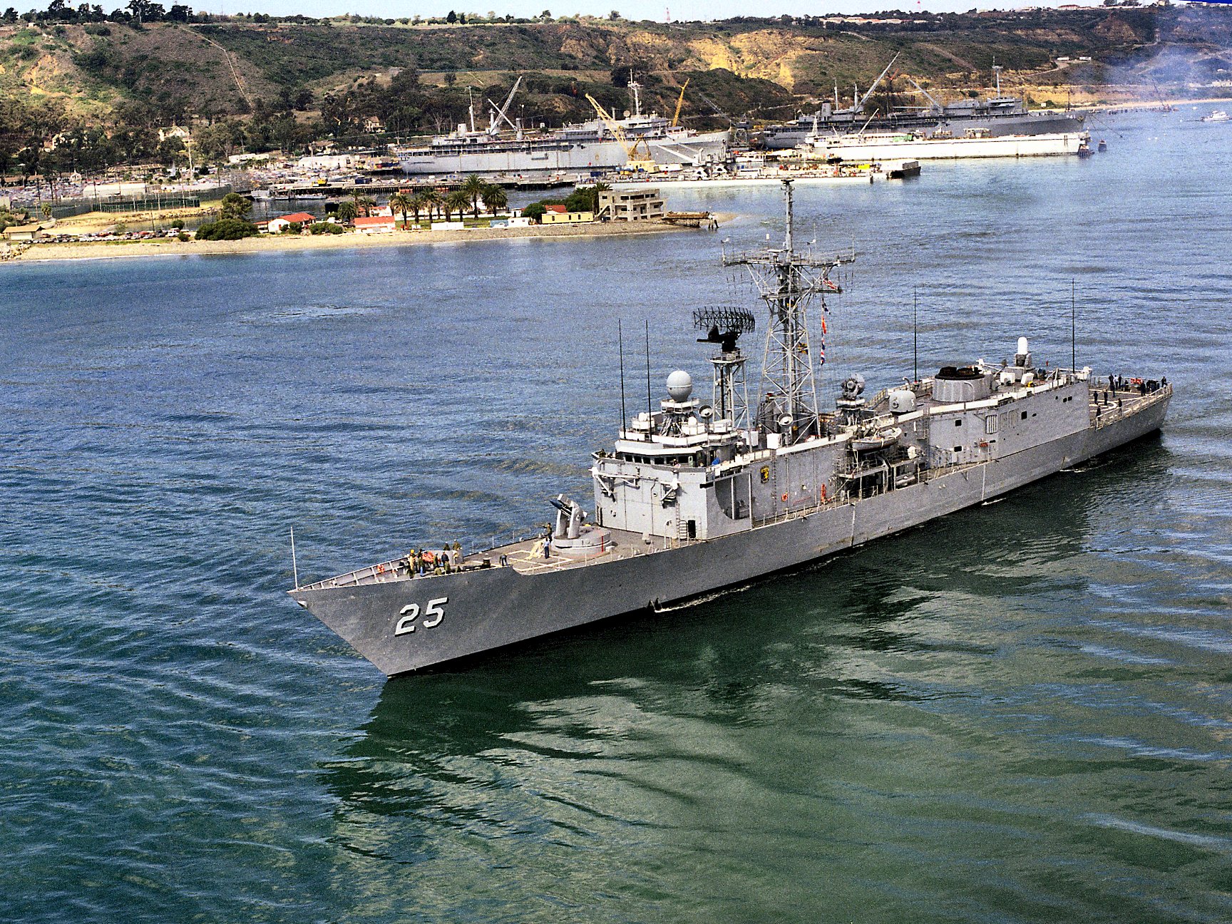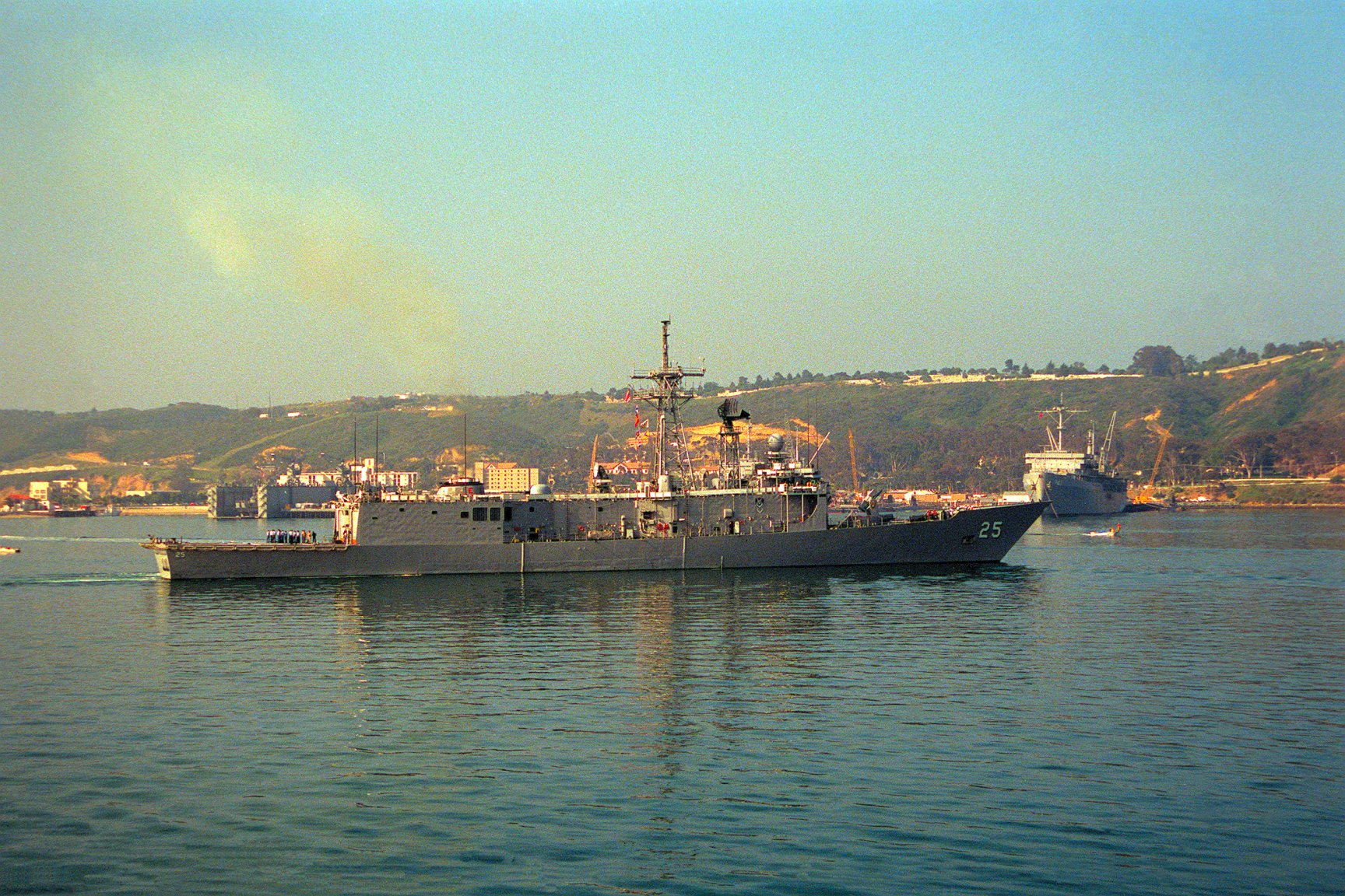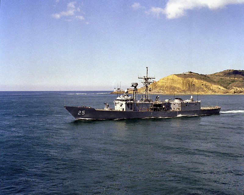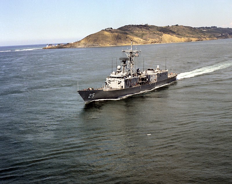 900k | 27 February 1987: San Diego, Cal. - A port bow view of Copeland underway as it passes the Naval Submarine Base while departing San Diego. (U.S. Navy photo DVID #DN-SC-90-02305 by PH1 Dutkiewicz, from the DVIC) | ||