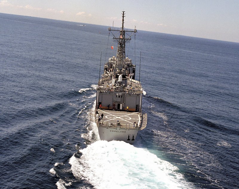 173k | 27 February 1987: San Diego, Cal. - A port quarter view of Copeland underway as it departs San Diego. (U.S. Navy photo DVID #DN-SC-90-02307 by PH1 Dutkiewicz, from the DVIC) | ||