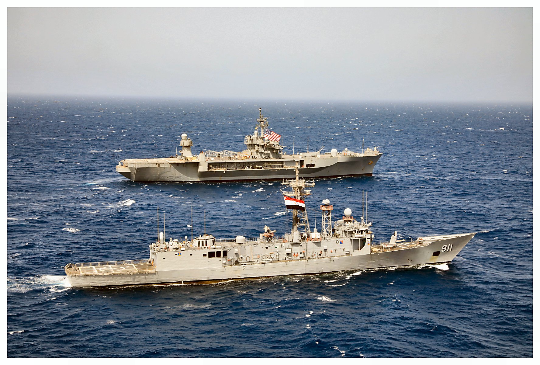 501k | 20 April 2022: the Red Sea - The Egyptian Navy frigate ENS Alexandria (F911) and amphibious command ship USS Mount Whitney (LCC 20) operate in the