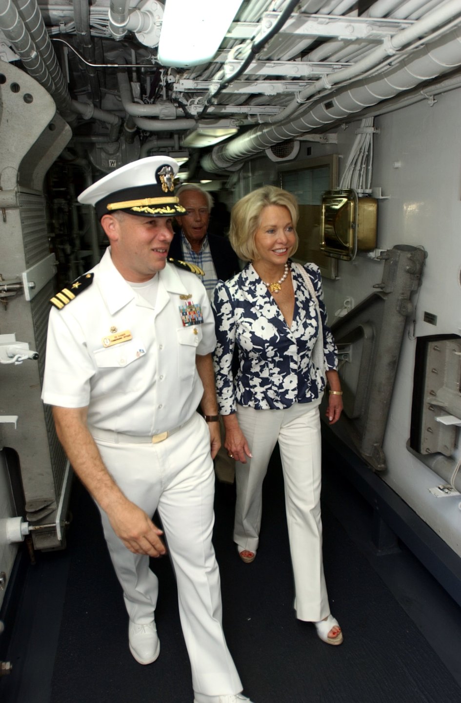 the Eastern Caribbean Mary Ourisman, a tour of the ship's spaces. Ourisman visited the ship for a 4th of July ceremony during a U.S. Southern Command-sponsored port visit to St. Lucia. (U.S. Navy photo #080704-N-8943B-017 by MC2 Michael Buslovich from the Navy Newstand) | ||