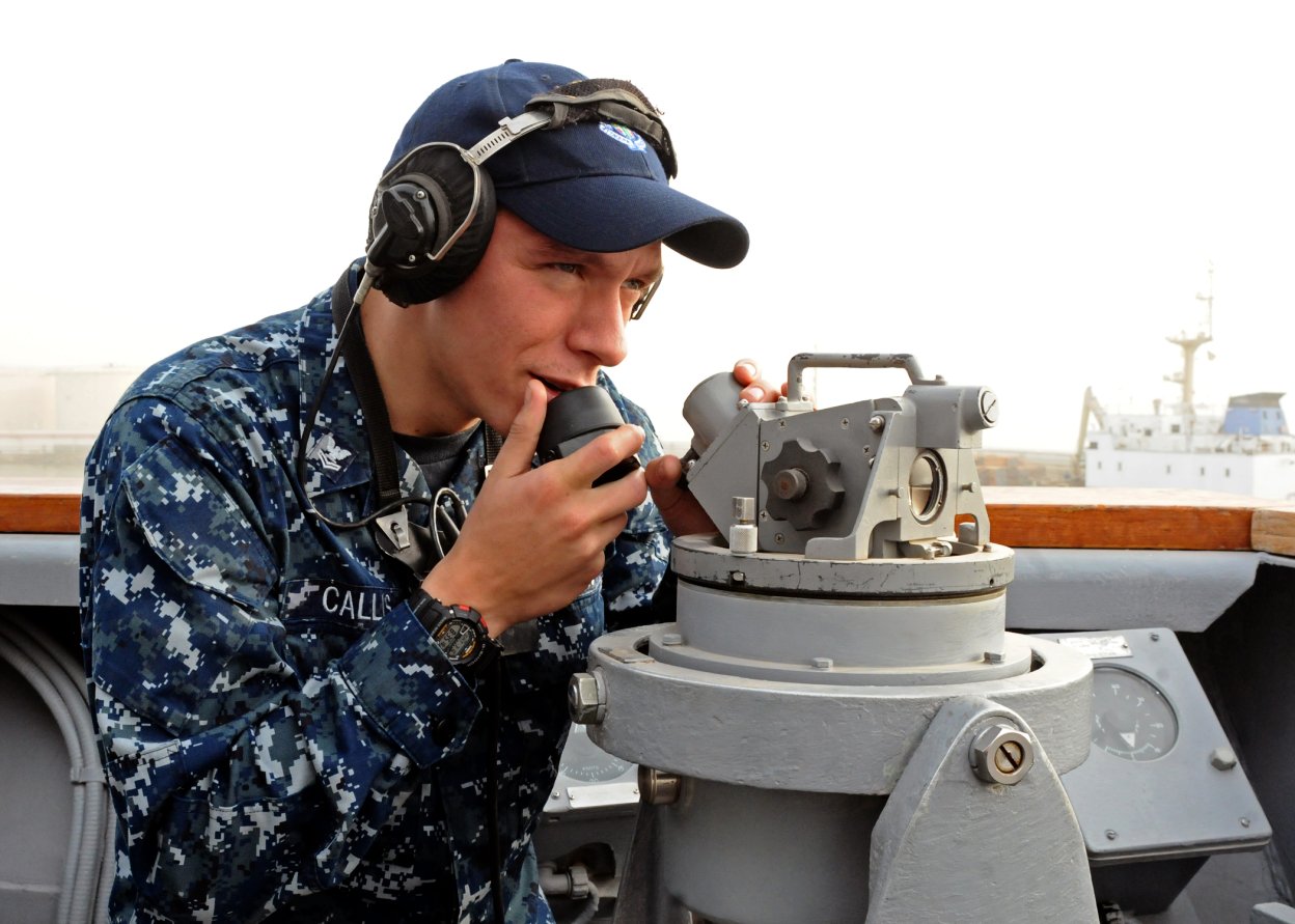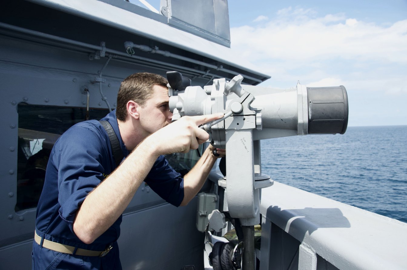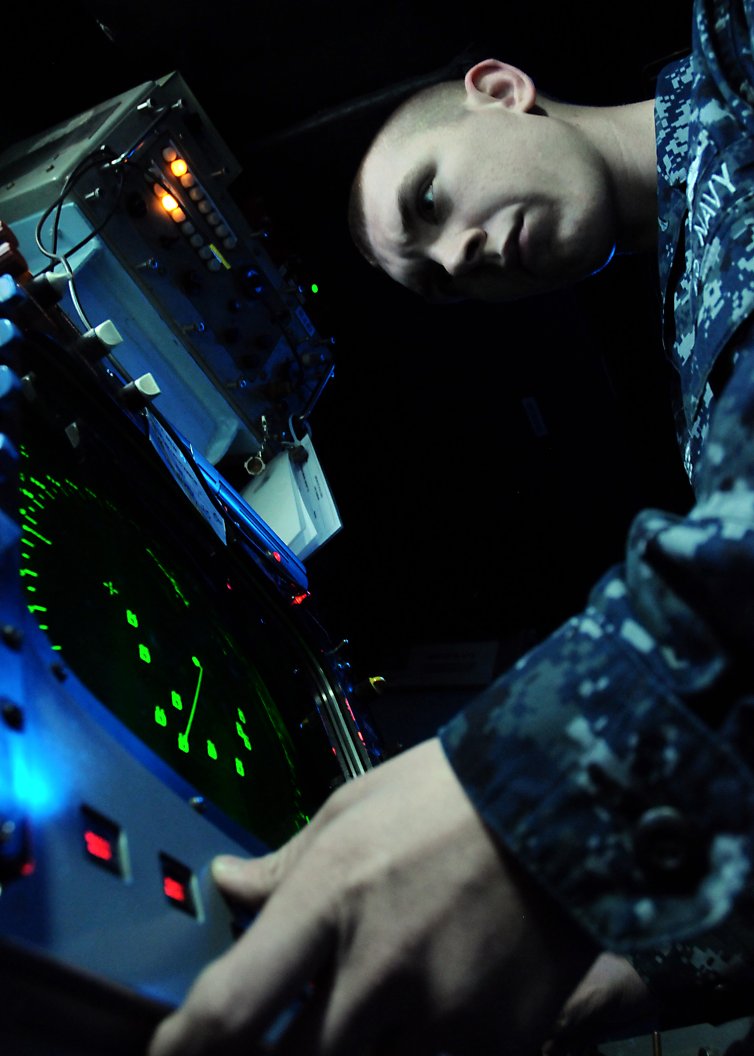 153k | 10 September 2014: the Atlantic Ocean - Lt.(jg) Mark Veazey, from Atlanta, searches for surface contacts aboard the guided-missile frigate Simpson. Simpson