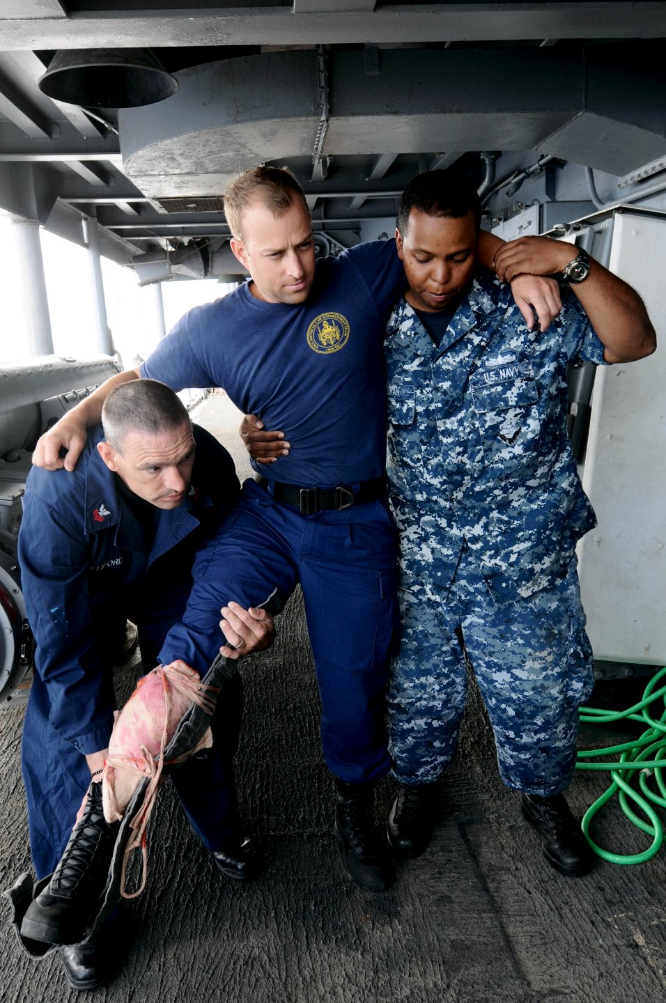 251k | 10 March 2014: the Atlantic Ocean - Hospital Corpsman 1st Class Matthew Robichaux, center, leads stretcher-bearer teams during a mass causality drill aboard Simpson. (U.S. Navy photo #140310-N-SK590-302 by MC2 Tim D. Godbee from the Navy Newstand) | ||
