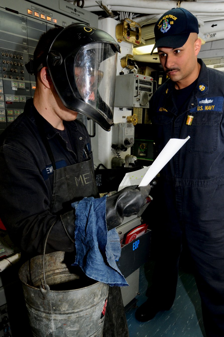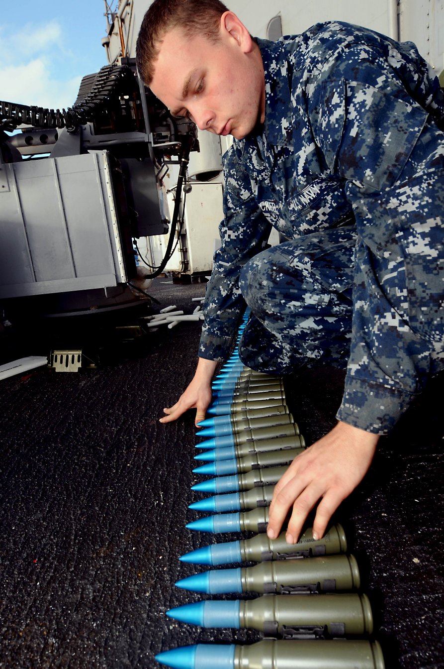 248k | 09 April 2012: the Atlantic Ocean - Fire Controlman 2nd Class Gerald Delaney cleans a close-in weapons system aboard Simpson for an upcoming departmental inspection. (U.S. Navy photo #120409-N-RN782-052 by MCSN Brian T. Glunt from the Navy Newstand) | ||
