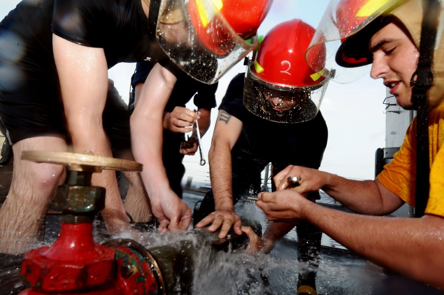 Denise apply a jubilee patch to a busted pipe during damage control training on the forecastle of Simpson. (U.S. Navy photo #120413-N-RN782-110 by MCSN Brian T. Glunt from the Navy Newstand) | ||