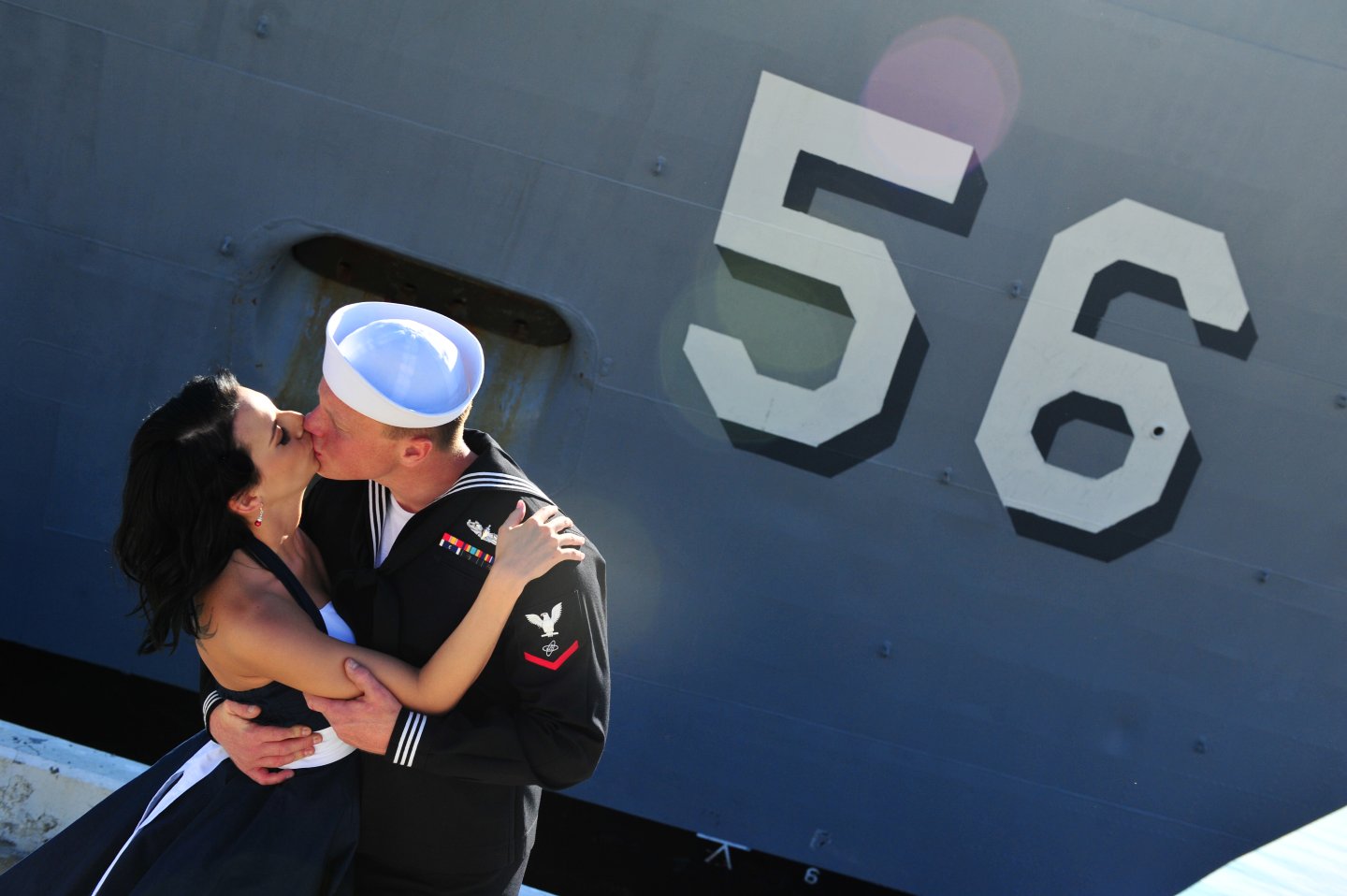 121k | 20 March 2014: Mayport, Fla. - Electronics Technician 3rd Class Spencer Greer kisses his wife after the return of the guided-missile frigate Simpson to Mayport, Fla.