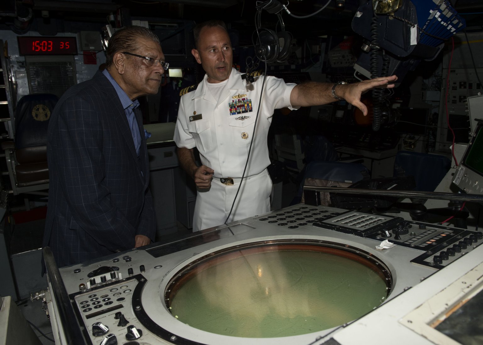 216k | 03 February 2015: Port Louis, Mauritius - Coommander Ken Anderson, commanding officer of Simpson, gives a tour to Mauritius President Kailash Purryag. Purryag