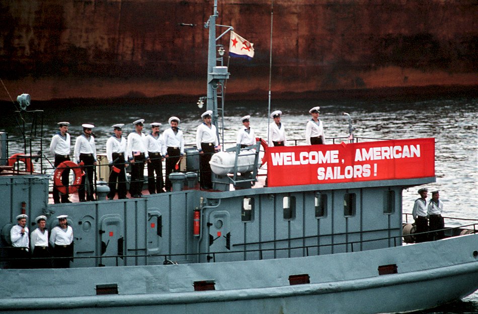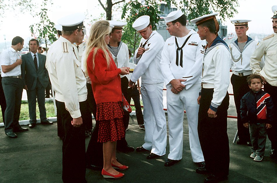 Americans came to the Soviet Union aboard two US Navy ships, Reuben James and Princeton, for a four-day goodwill visit. (U.S. Navy photo DVID #DN-SC-91-02258 by PHCS Terry Mitchell) | |||