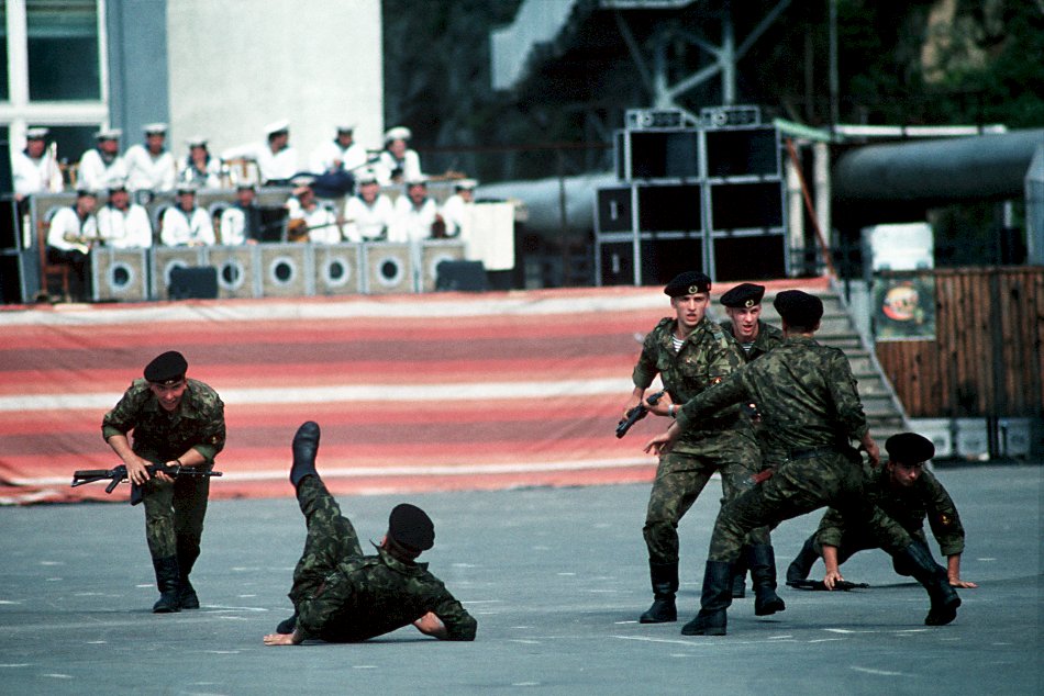 128k | September 1990: Vladivostok USSR - Soviet marines put on a hand-to-hand combat demonstration during a military review held for Soviet citizens and visiting American sailors. (U.S. Navy photo DVID #DN-ST-91-00741 by PH1 Ted Salois) | |||