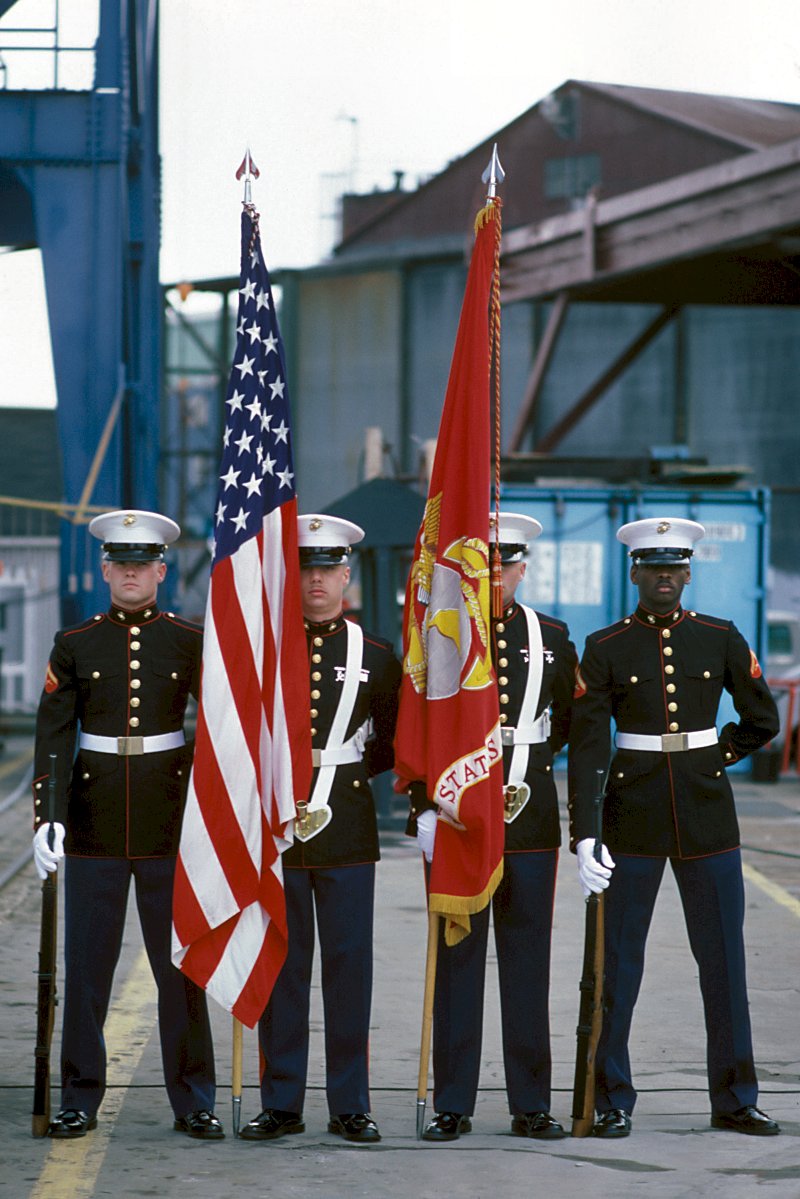 161k | 12 April 1986: Bath, Me. - A U.S. Marine Corps color guard display the colors during the commissioning ceremony. (U.S. Navy photo DVID #DN-ST-86-06792 by PH2 Alexander C. Hicks, Jr. from the DVIC) | ||