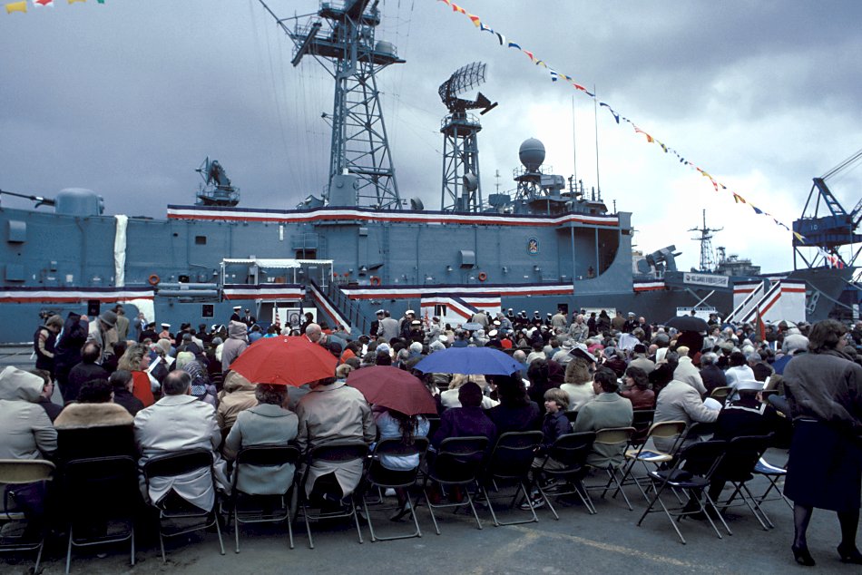 137k | 12 April 1986: Bath, Me. - Guests wait for the commissioning of the guided missile frigate Samuel B. Roberts to begin. (U.S. Navy photo DVID #DN-ST-86-06793 by PH2 Alexander C. Hicks, Jr. from the DVIC) | ||