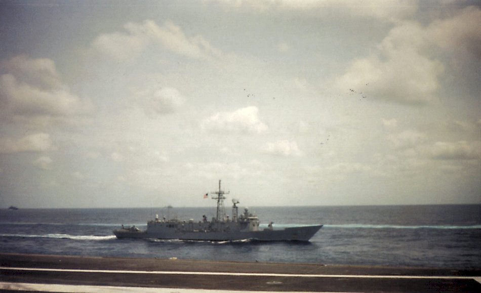 64k | July 1996: Photo of Samuel B. Roberts I took from the flight deck of USS George Washington (CVN73). We were on our way home from a deployment. (photo © Wendell McLaughlin) |