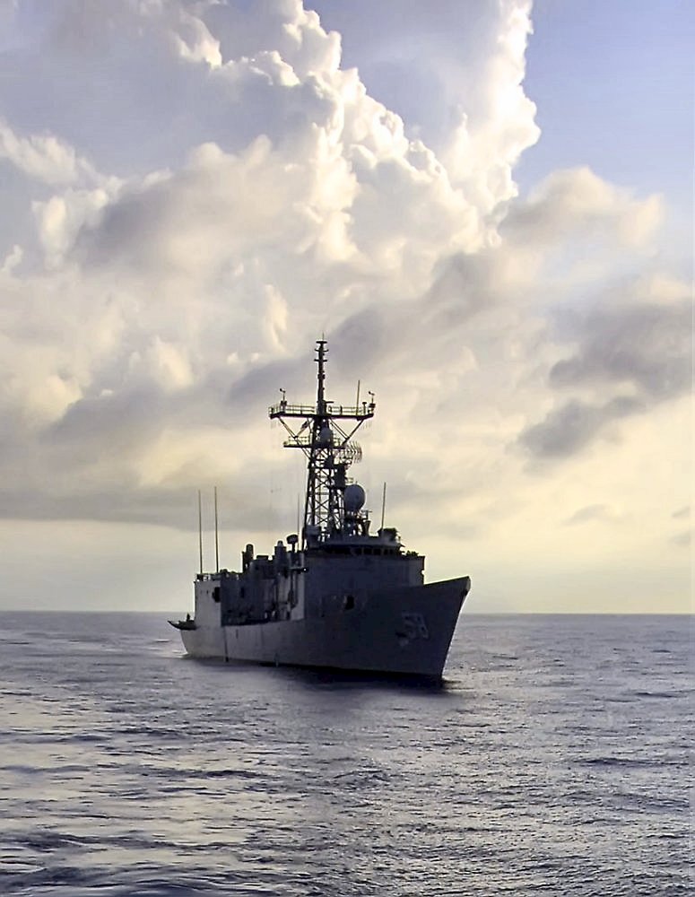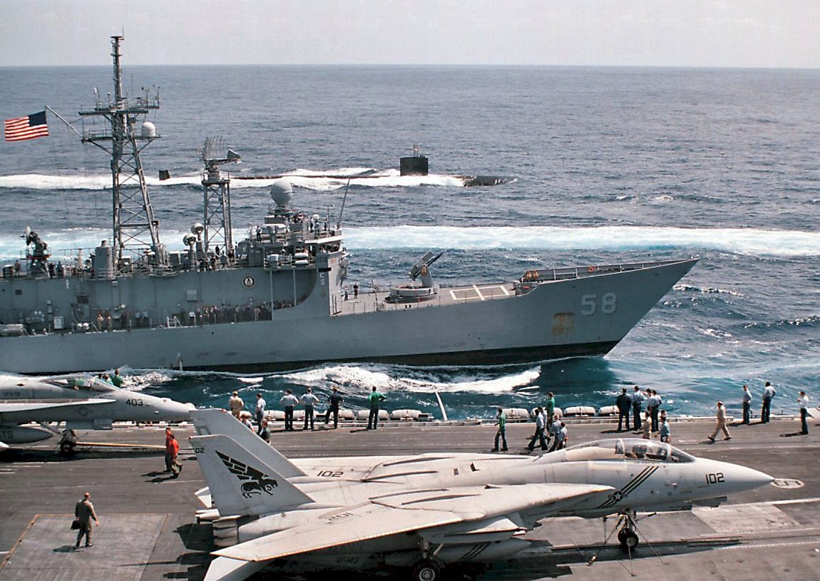 215k | 25 April 2002: At sea - The U.S. Navy guided missile frigate Samuel B. Roberts and nuclear powered Los Angeles-class attack submarine USS