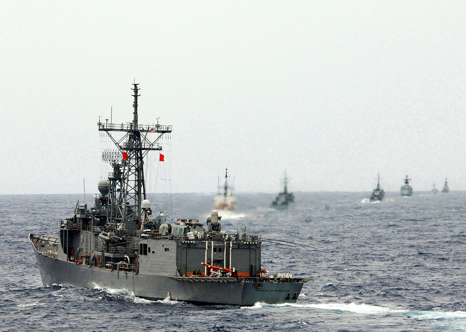 235k | 19 July 2005: Caribbean Sea - Samuel B. Roberts maneuvers into a formation along with naval and coast guard units from Colombia, Chile, Ecuador,