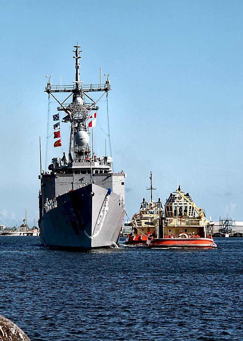690k | 10 May 2013: Souda Bay, Greece - The guided-missile frigate USS Samuel B. Roberts (FFG 58) arrives for a port visit. Samuel B. Roberts, homeported in