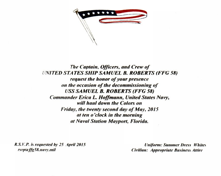 at Naval Station Mayport. Samuel B. Roberts is decommissioning after 29 years of service. (U.S. Navy photo #150522-N-RX128-111 by MCSN Nathan Lang from the Navy News Stand) | ||