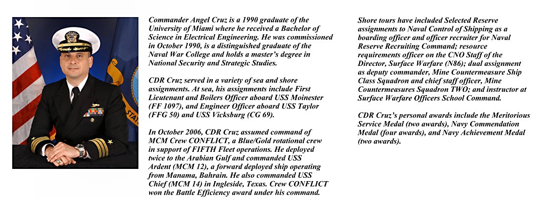 | 15.) 23 Jul. 2010 - 19 Jan. 2012 | Cmdr. Angel Carlos Cruz (OCS '90) (Miami, Fla.) |