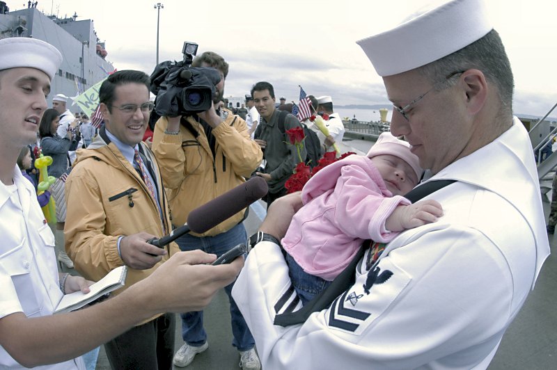 (FFG 61) meets his new five day old daughter upon returning from deployment. Ingraham returned to Everett after an eight-month deployment in support of