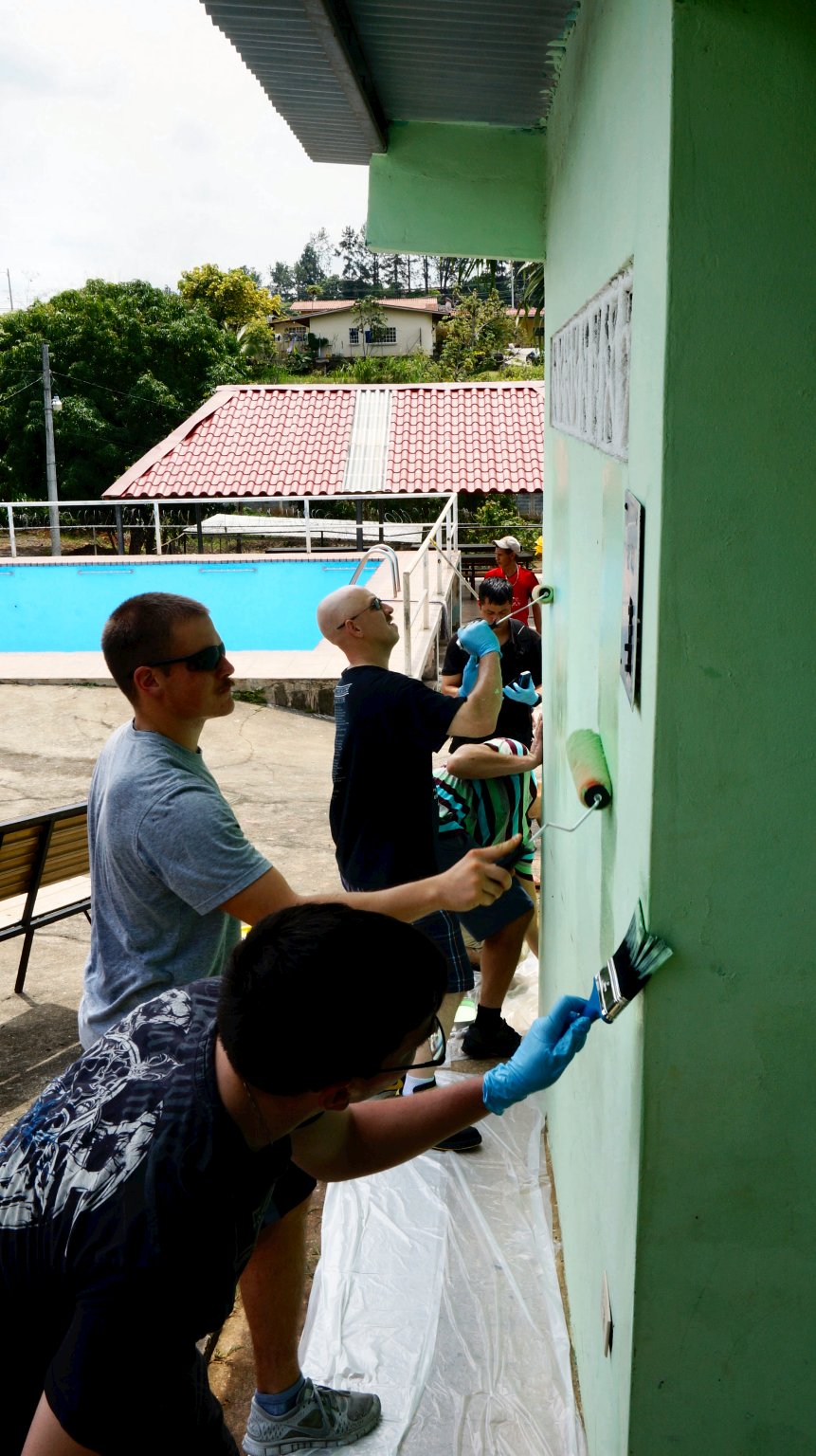 168k | 30 May 2014: Arraijan, Panama - Sailors assigned to the guided-missile frigate Ingraham repaint pool areas of the San Jose de Malambo