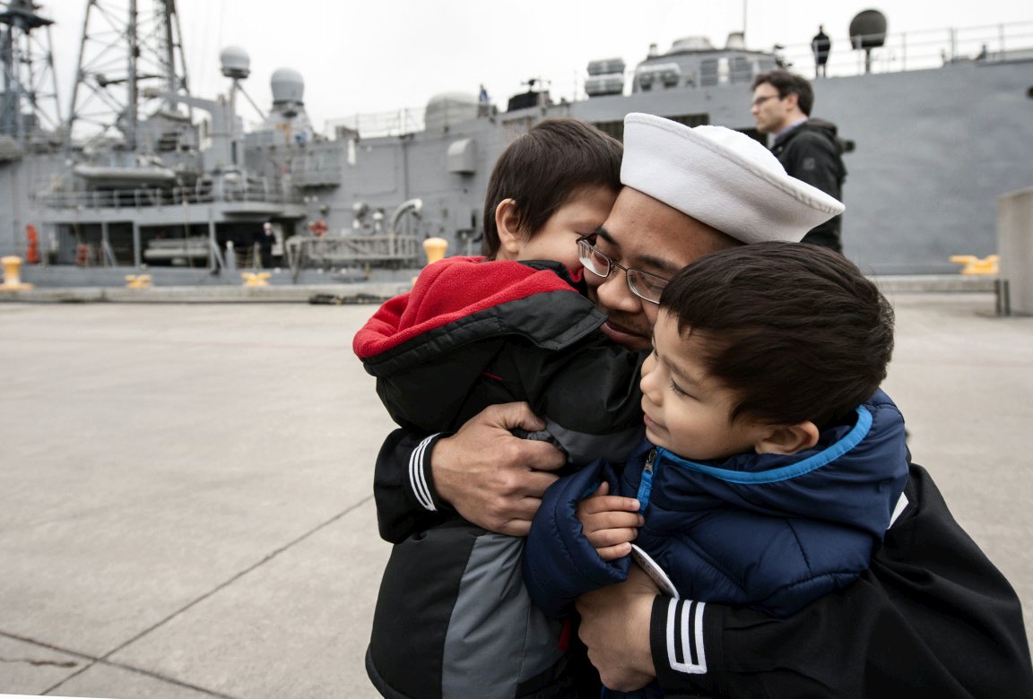 152k | 26 October 2014: Everett, Wash. - Ship's Serviceman Seaman Gary Luu, from Beaverton, Ore., greets his son following a deployment to the U.S. 4th Fleet