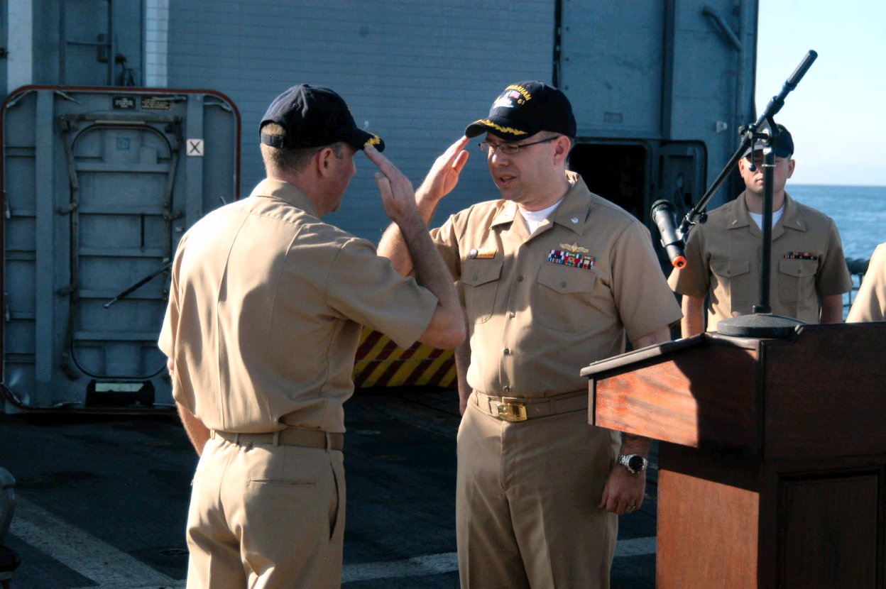 152k | 13 December 2009: Everett, Wash. - Cmdr. Adam Welter assumes command of USS Ingraham (FFG 61) from Cmdr. Matthew D. Orvios in a ceremony aboard Ingraham. (U.S. Navy photo #091213-N-#####-002 from the Defense Video & Imagery Distribution System) |