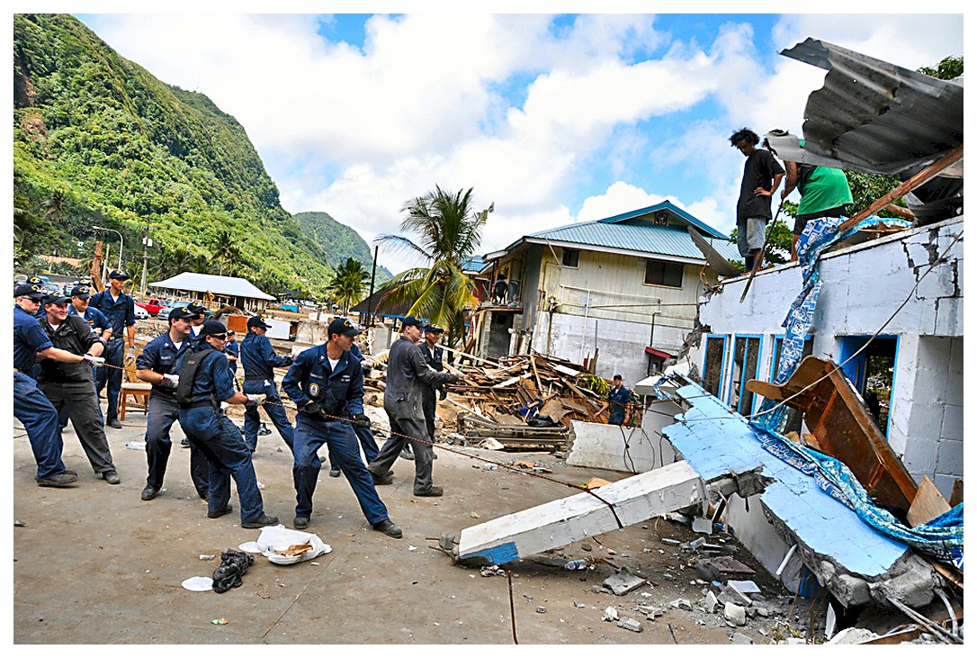 during disaster recovery efforts in Pago Pago, American Samoa. The region was struck by an earthquake and resulting tsunami. (U.S. Navy photo #091003-F-#####-333 by Msgt. Cohen Young from the Defense Video & Imagery Distribution System) | ||