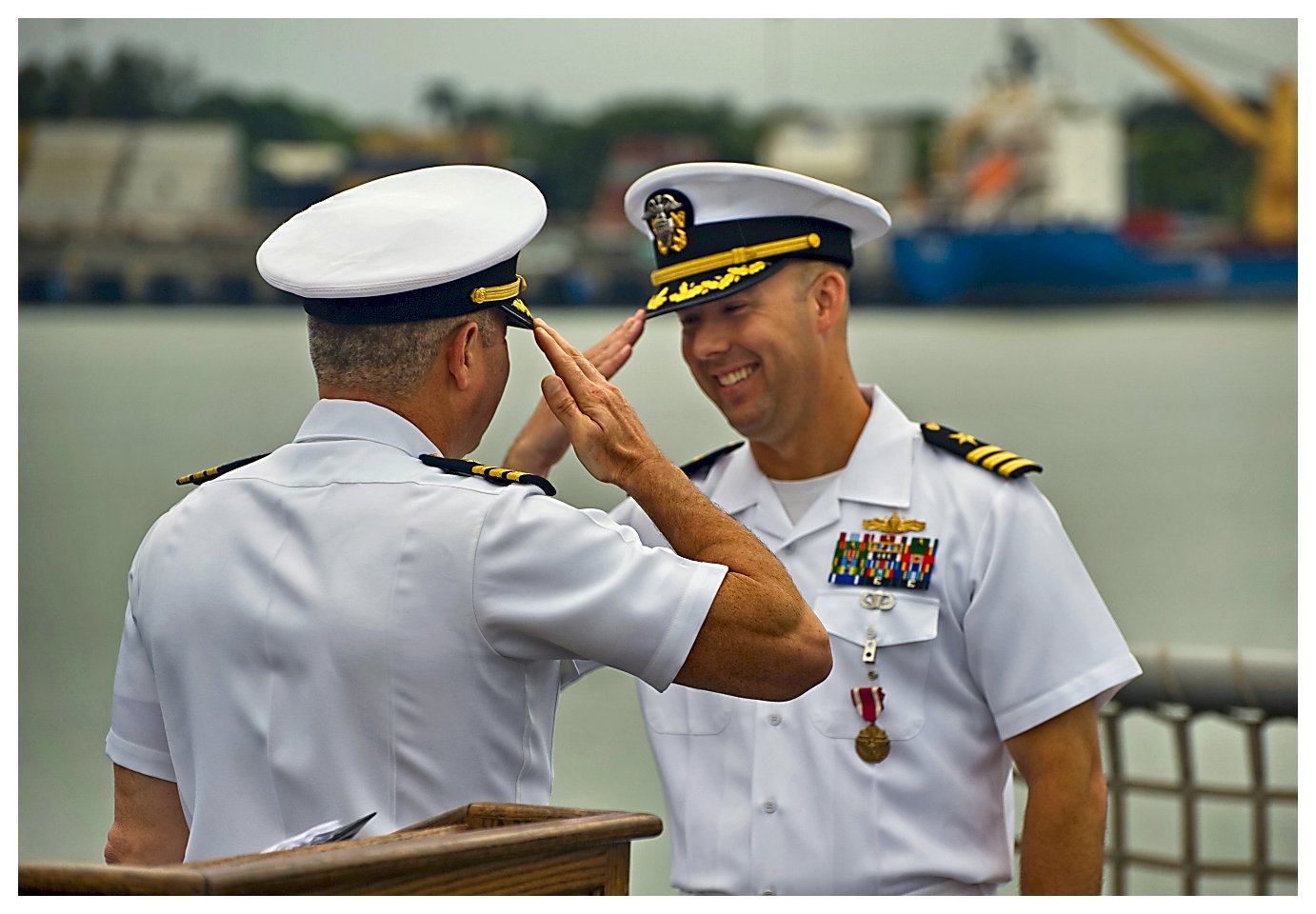 162k | 09 June 2014: Panama City, Panama - Commander Daniel Straub properly relieves Commander Joey Frantzen as commanding officer of the guided missile frigate USS Ingraham (FFG 61). (U.S. Navy photo #140609-DSC2007 by STG2 Jeremy P. West from the Naval Surface Warriors - Flickr) | ||