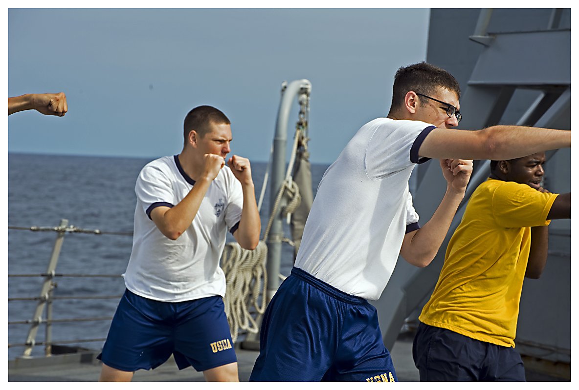125k | 20 July 2014: the Pacific Ocean - Midshipman Third Class Scott Swegle, Midshipmen Third Class James Talisse, and Midshipmen Third Class Brian Evertson participate in USS Ingraham’s Basic Security Reaction Force (SRF-B) class. (U.S. Navy photo #20140720-DSC3052 by STG2 Jeremy P. West from the Naval Surface Warriors - Flickr) | ||