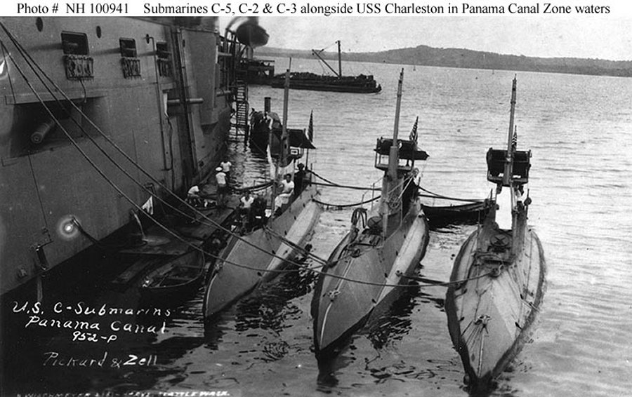 ![]() | 118k | C-Class submarines alongside Charleston (C-22) in Panama Canal Zone waters, circa 1916-1917.