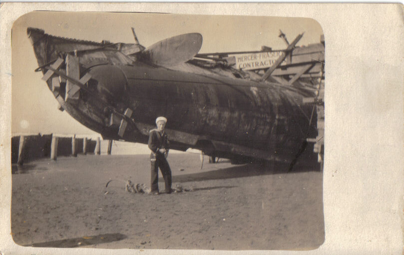 ![]() | 110k | A sailor poises for a picture during the recovery operation of the H-3 (SS-30), 6 April 1917 by Mercer-Fraser Co. | USN photo courtesy of Robert M. Cieri. | ||