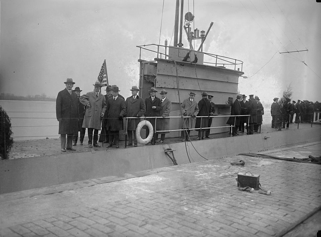 208k | Wilbur and House Naval Affairs inspect sub T-3 (SS-61) at Navy Yard, 30 December 1925. | Photo # npcc 27391v, LC-F81-38874 courtesy of the Library of Congress via Bill Gonyo. | |