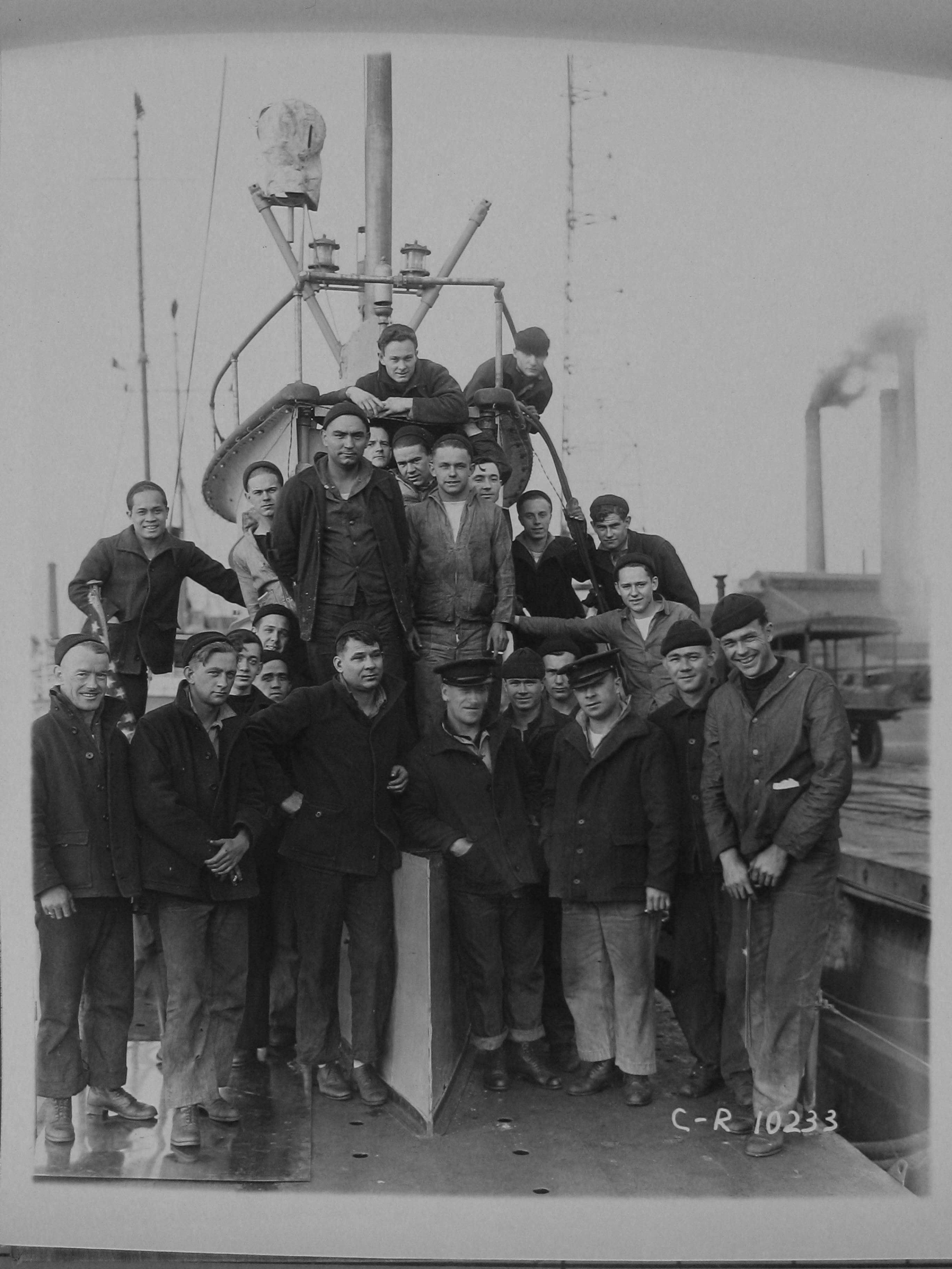 576k | Getting the boat ready for Xmas or Arbor Day in this amidship view. | US National Archives photo C & R # 10227, from NARA, College Park, Maryland, courtesy of Sean Hert. | |