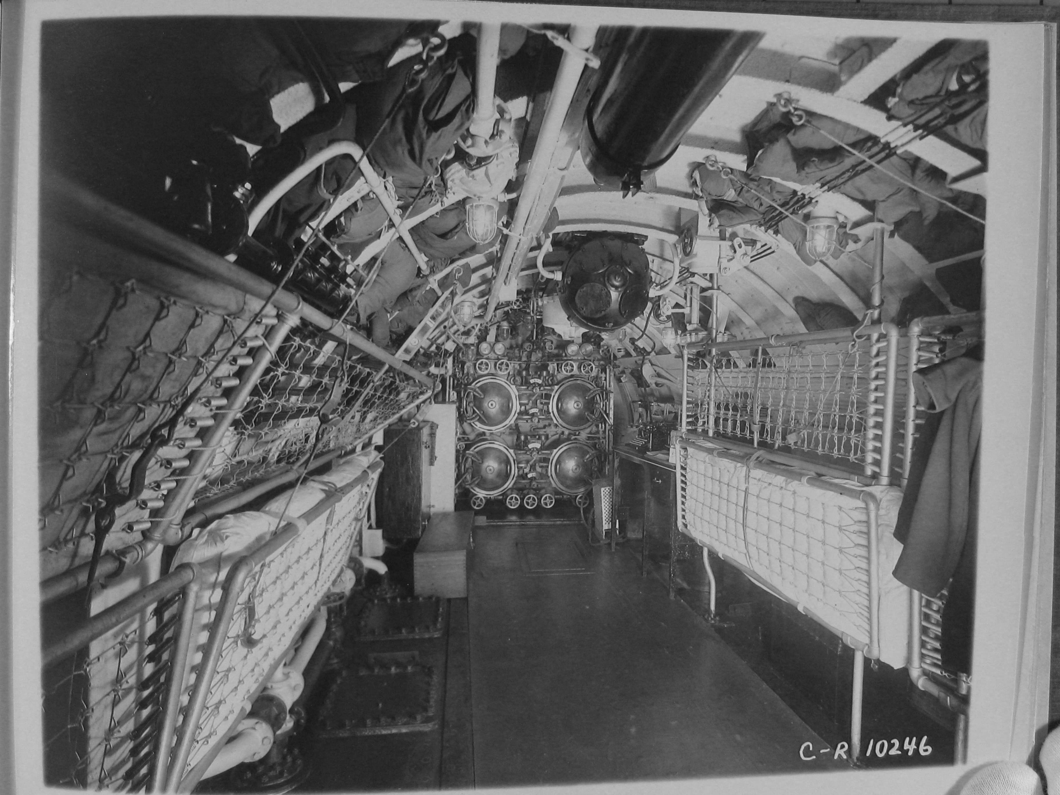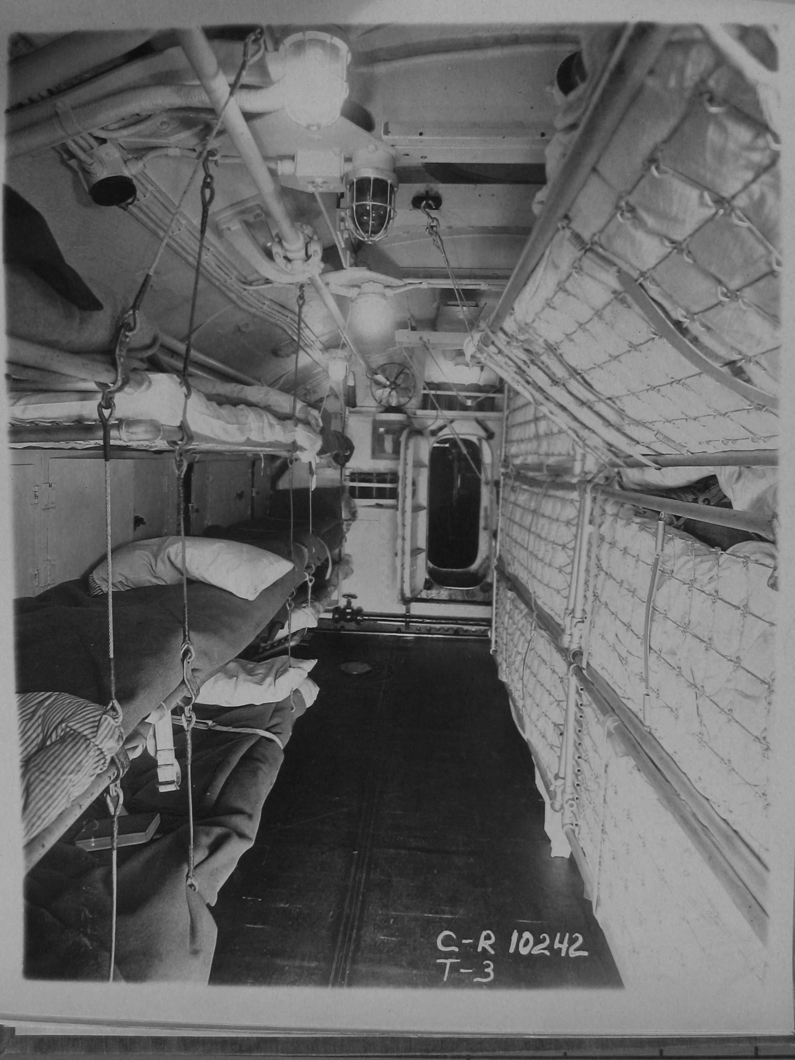 603k | Torpedo room aft end. Officer's berthing, middle of compartment looking forward. Non-watertight door leads to the torpedo room. | Text i.d. courtesy of David Johnston & Ric Hedman. US National Archives photo C & R 10253 from NARA, College Park, Maryland, courtesy of Sean Hert. | |
