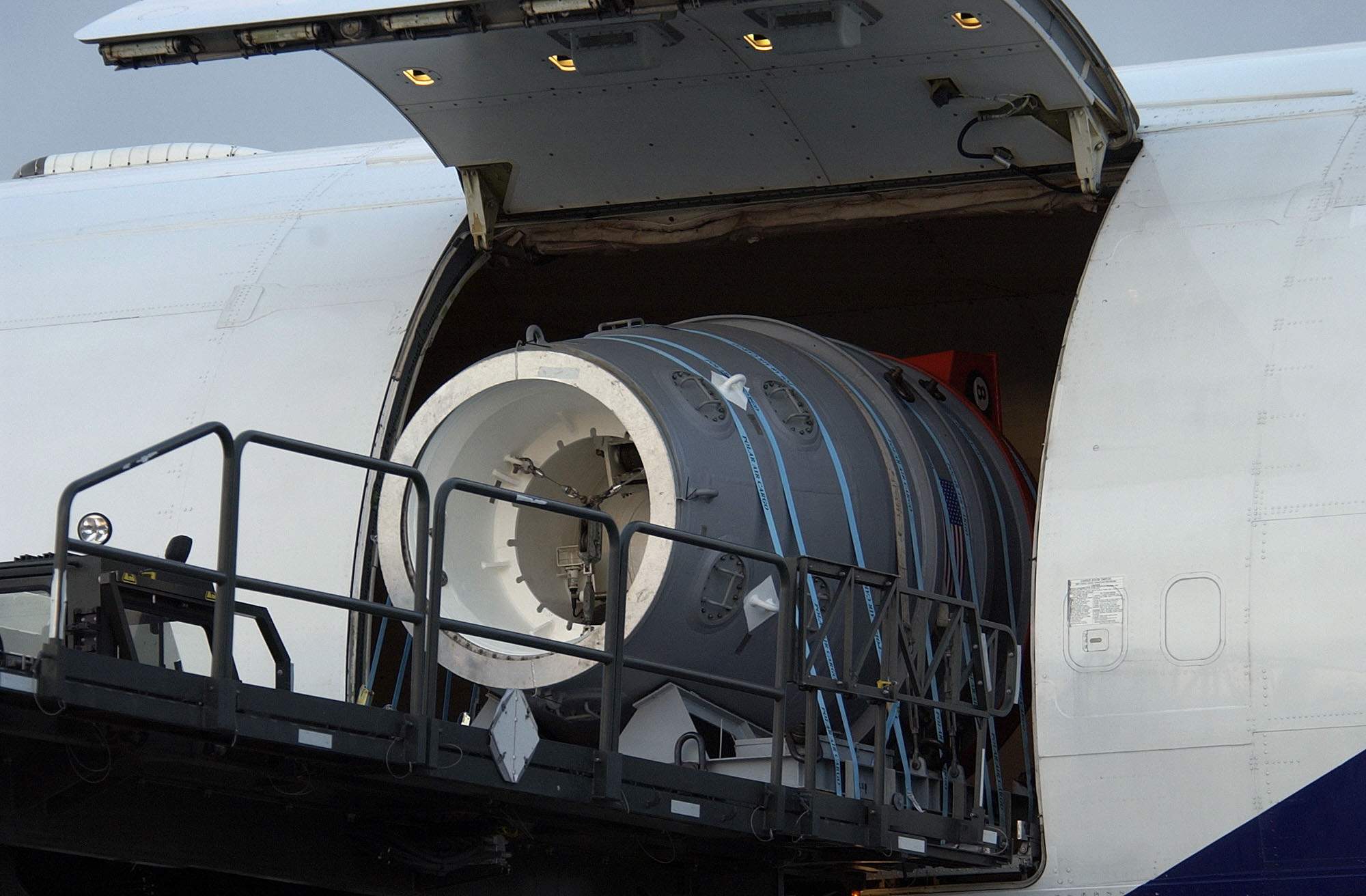 ![]() | 258k | The Navy's Deep Submergence Unit Submarine Rescue Chamber is loaded on board a 747 aircraft at the Air Mobility Command (AMC) terminal at San Diego, Calif, on 7 June 2005. The equipment is being transported to Italy, where U.S. and North Atlantic Treaty Organization (NATO) divers will respond to a submarine escape and rescue exercise in the Mediterranean Sea during exercise "Sorbet Royal 2005." "Sorbet Royal " will test the capabilities and interoperability of 10 participating nations. Four submarines will participate in the exercise, testing divers abilities use rescue equipment to solve complex disaster problems. | USN photo # N-6426C-030 by Photographer's Mate 1st Class James Christopher, courtesy of chinfo.navy.mil. | |