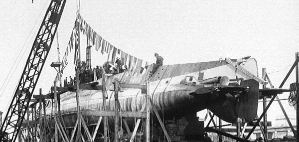 41k | H-7 (SS-150) under construction at Puget Sound Navy Yard, Bremerton, WA. 1918. | USN photo courtesy of Ric Hedman. | |
