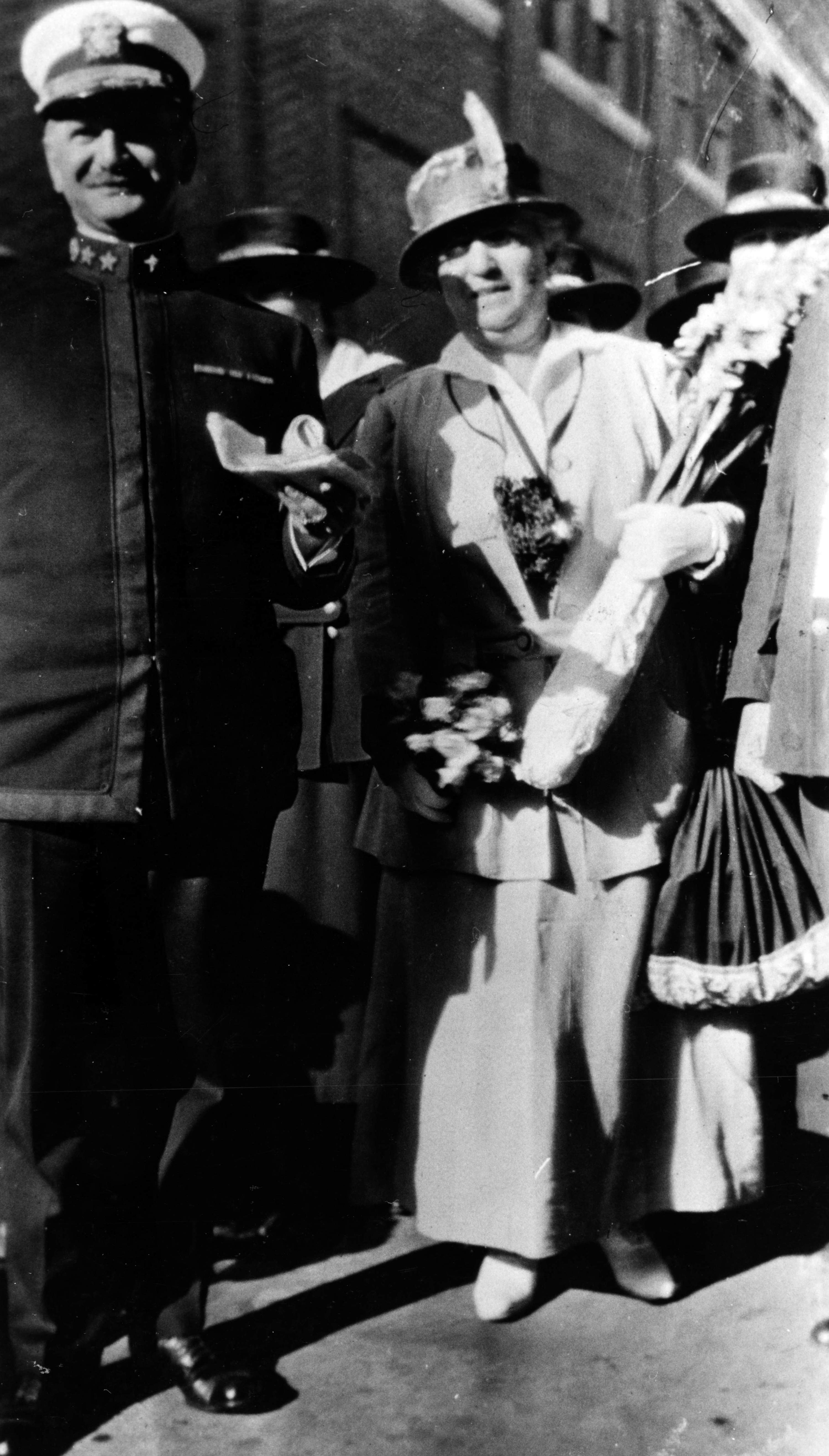 939k | Sponsor: Miss Julia Field, daughter of Captain Harry A. Field, U. S. Navy, in command of the Navy Yard. Pictured: Rear Admiral Harry A. Field, USN, Commandant of Puget Sound Navy Yard, Bremerton, Washington, and Mrs. Field, 1918, probably during the christening or commissioning of a new vessel. |