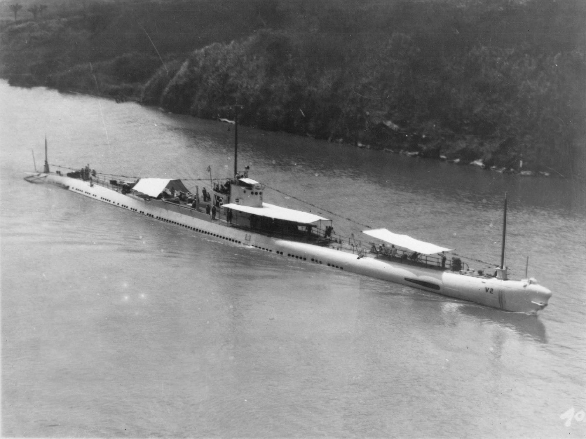 195k | Portside view of the V-2 (SS-164) probably transiting the Panama canal, circa late 1920's. | USN photo courtesy of Darryl L. Baker. | |