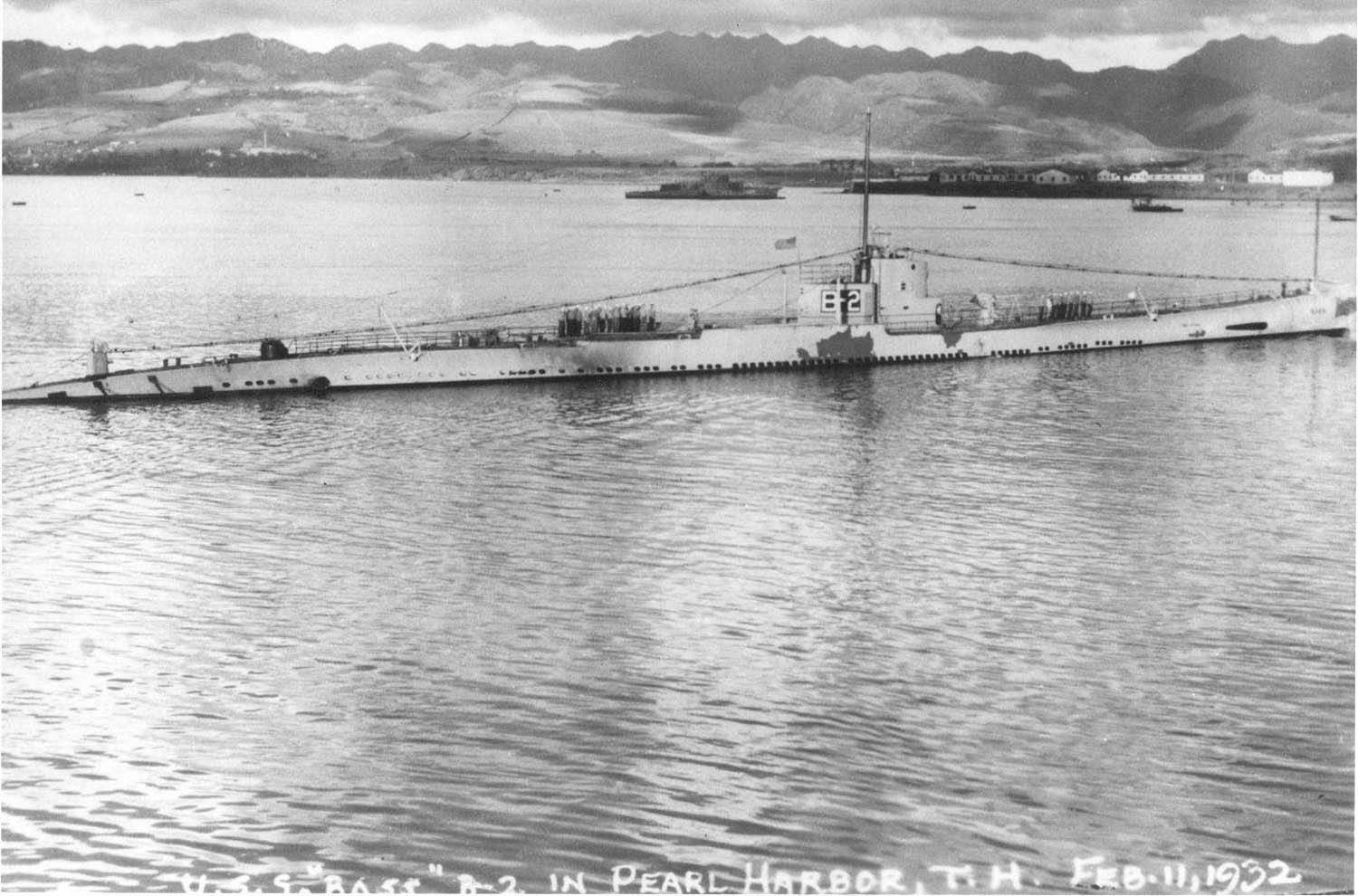175k | Broadside view of the Bass (SS-164) at Pearl Harbor, 11 February 1932. | USN photo. | |
