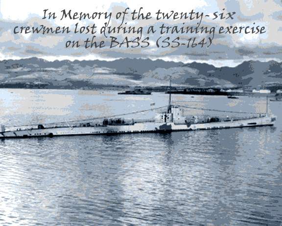 175k | On 17 August 1942 while at sea, a fire broke out in the Bass's (SS-164) after battery room and quickly spread to the after torpedo room and starboard main motor, resulting in the death of 26 enlisted men by asphyxiation. This is a commemorative photo honoring their memory. | Text courtesy of DANFS. Photo courtesy of Tom Kermen. Dante's Prayer courtesy of Loreena McKennitt via loreenamckennitt.com | |