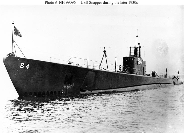 72k | Snapper (SS-185) photographed during the later 1930s. | Official USN photo # NH 99096, from the collections of the Naval Historical Center. | |