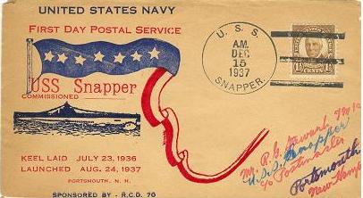 24k | Commemorative postal cover on the occasion of Snapper's (SS-185) commissioning, 16 December 1937. | Courtesy of Jack Treutle (of blessed memory). | |