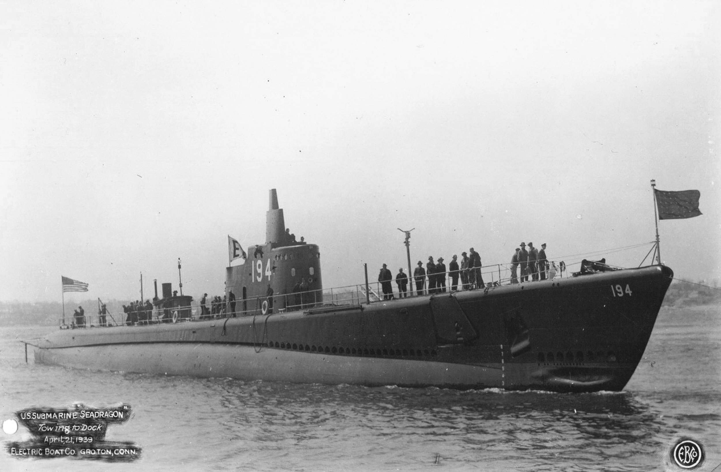 ![]() | 241k | Seadragon (SS-194) being towed to dock 21 April 1939, at Electric Boat Co., Groton, CT. | Electric Boat / USN photo courtesy of Scott Koen & ussnewyork.com. | |