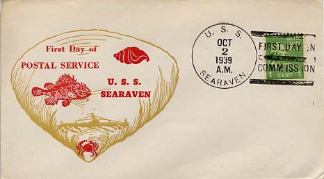 18k | Commemorative post mark on the occasion of Searaven's (SS-196) commissioning, 2 October 1939. | Photo courtesy of Jack Treutle (of blessed memory). | |