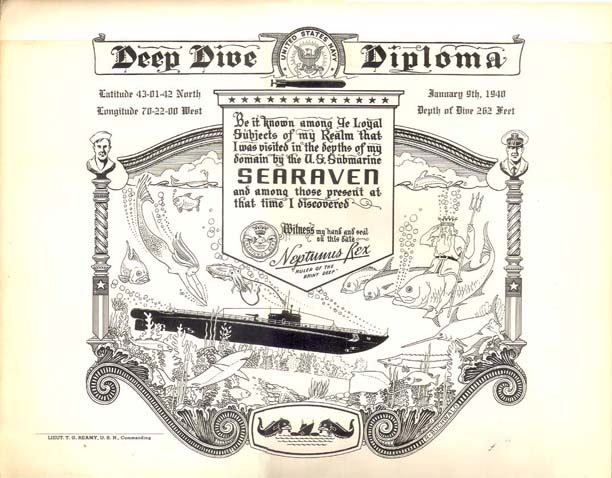 76k | Searaven (SS-196) receives her Deep Dive Diploma, 9 January 1940. | USN photo courtesy of Darryl L. Baker. | |