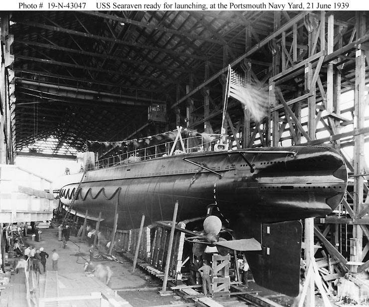 85k | Searaven (SS-196) ready for launching, at the Portsmouth Navy Yard, Kittery, Maine, 21 June 1939. | Photograph # 19-N-43047, from the Bureau of Ships Collection in the U.S. National Archives. | |
