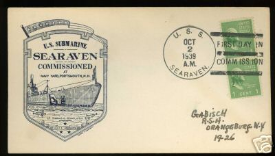 23k | Commemorative post mark on the occasion of Searaven's (SS-196) commissioning, 2 October 1939. | Photo courtesy of Jack Treutle (of blessed memory). | |