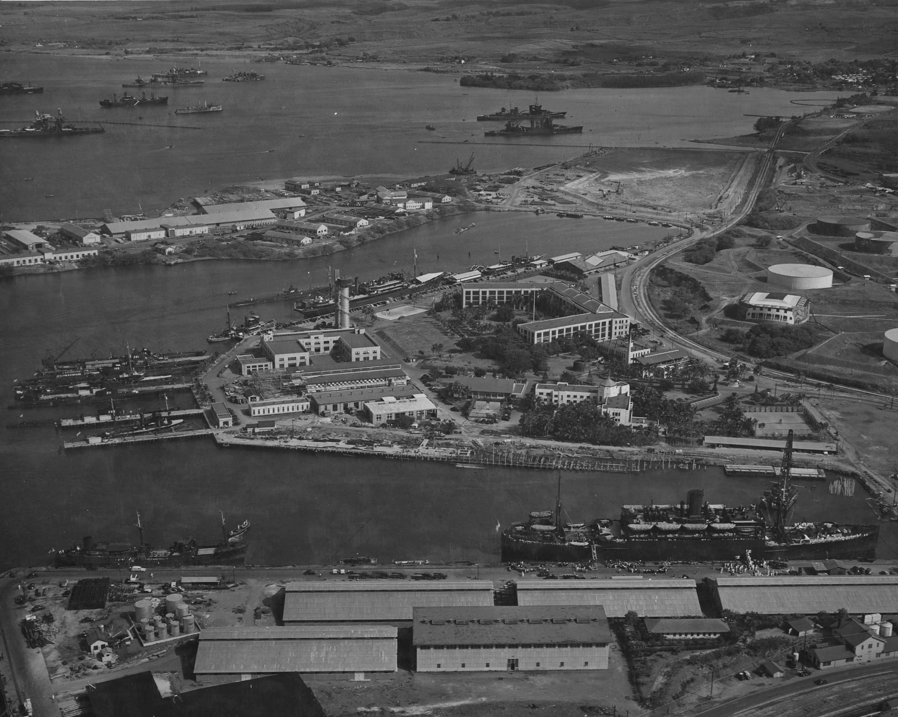 1.14k | Aerial view of the Submarine Base, Pearl Harbor, Oahu, Hawaii,