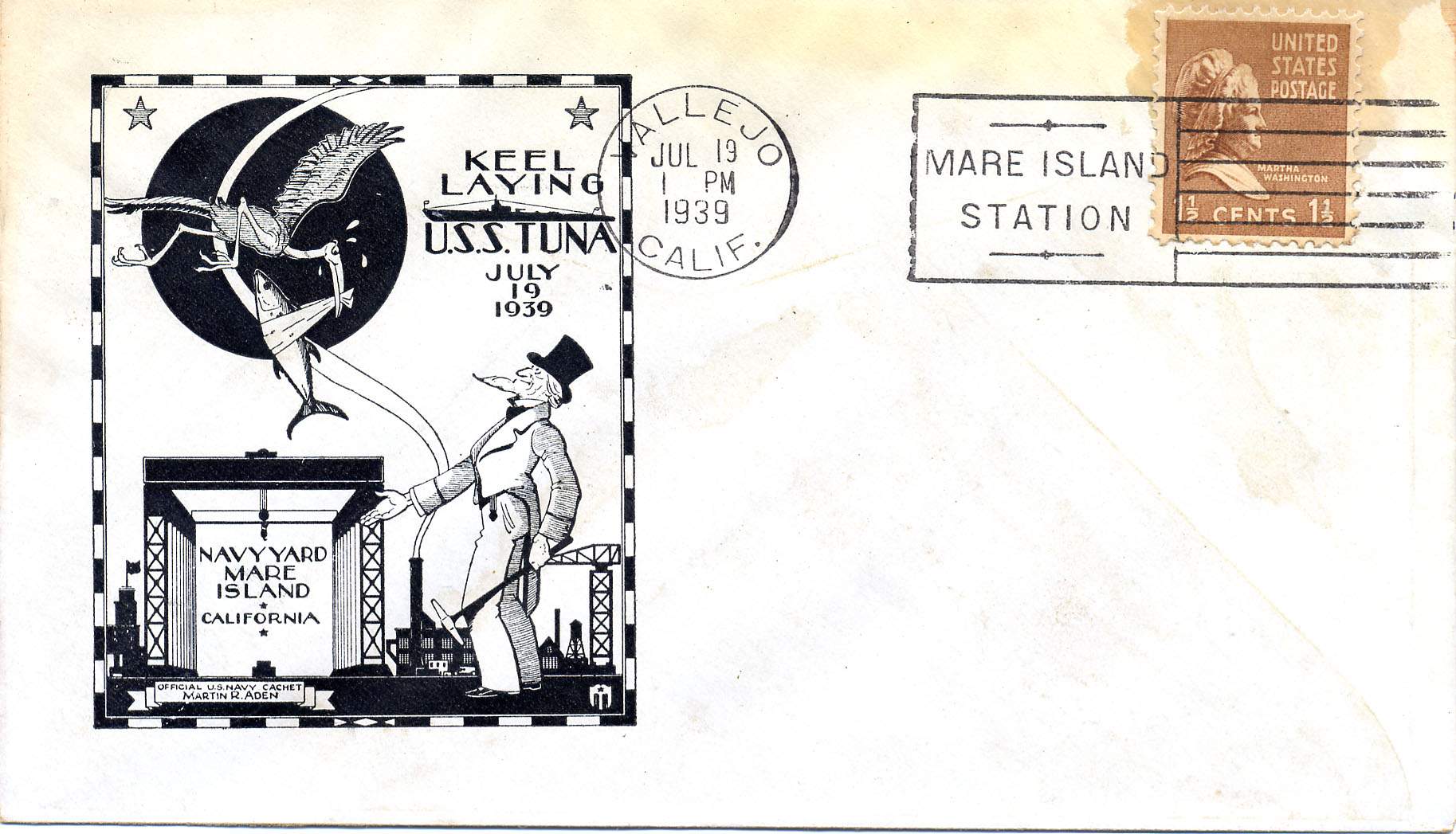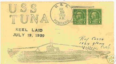 18k | First day cover for the keel laying of the Tuna (SS-203) on 19 July 1939. | Courtesy of Jack Treutle (of blessed memory). | |